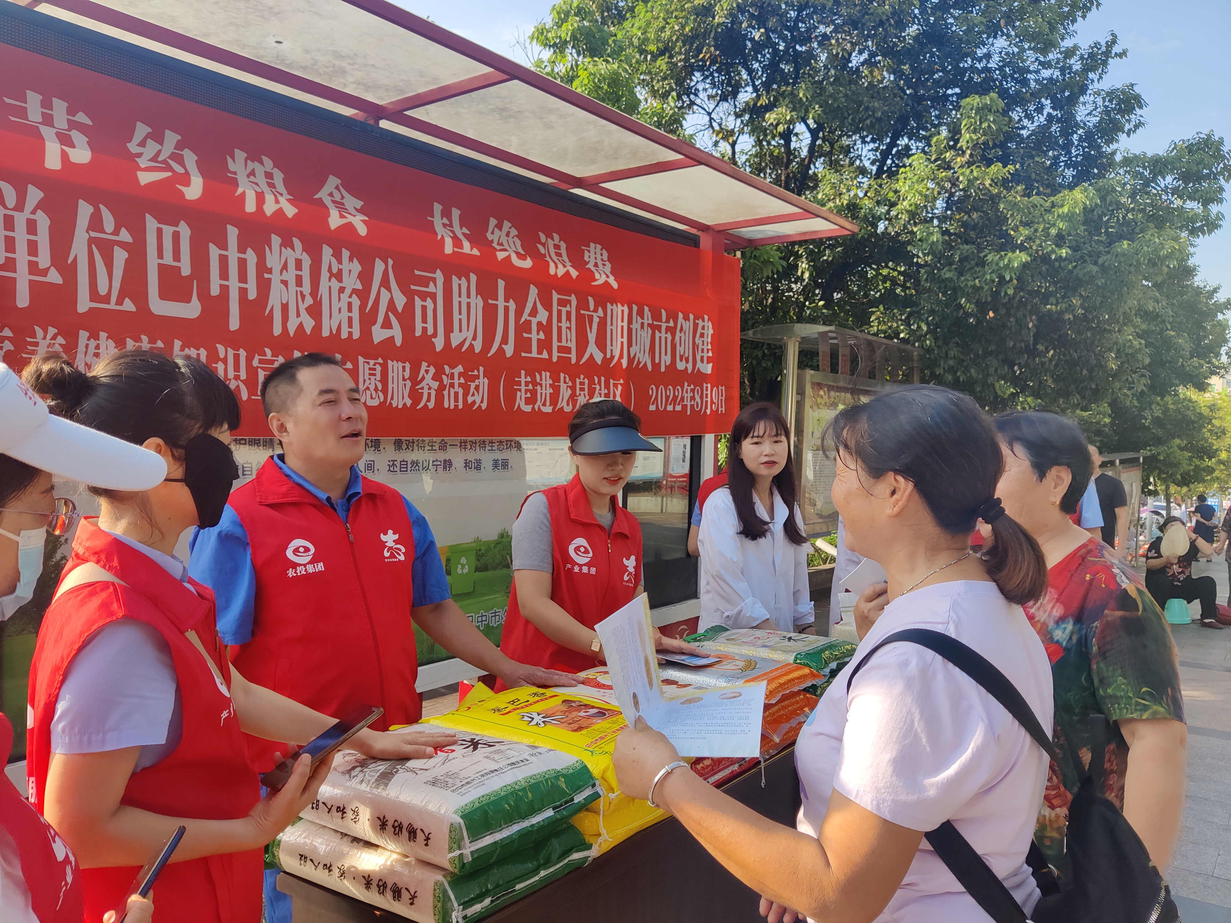 食為政首,糧安天下。為弘揚(yáng)中華民族勤儉節(jié)約傳統(tǒng)美德,深入開(kāi)展愛(ài)糧節(jié)糧宣傳教育,助力巴中全國(guó)文明城市創(chuàng)建。8月9日,四川巴中國(guó)家糧食和物資儲(chǔ)備庫(kù)有限公司走進(jìn)巴州區(qū)江北街道龍泉社區(qū)開(kāi)展“節(jié)約糧食·杜絕浪費(fèi)”志愿服務(wù)活動(dòng)。