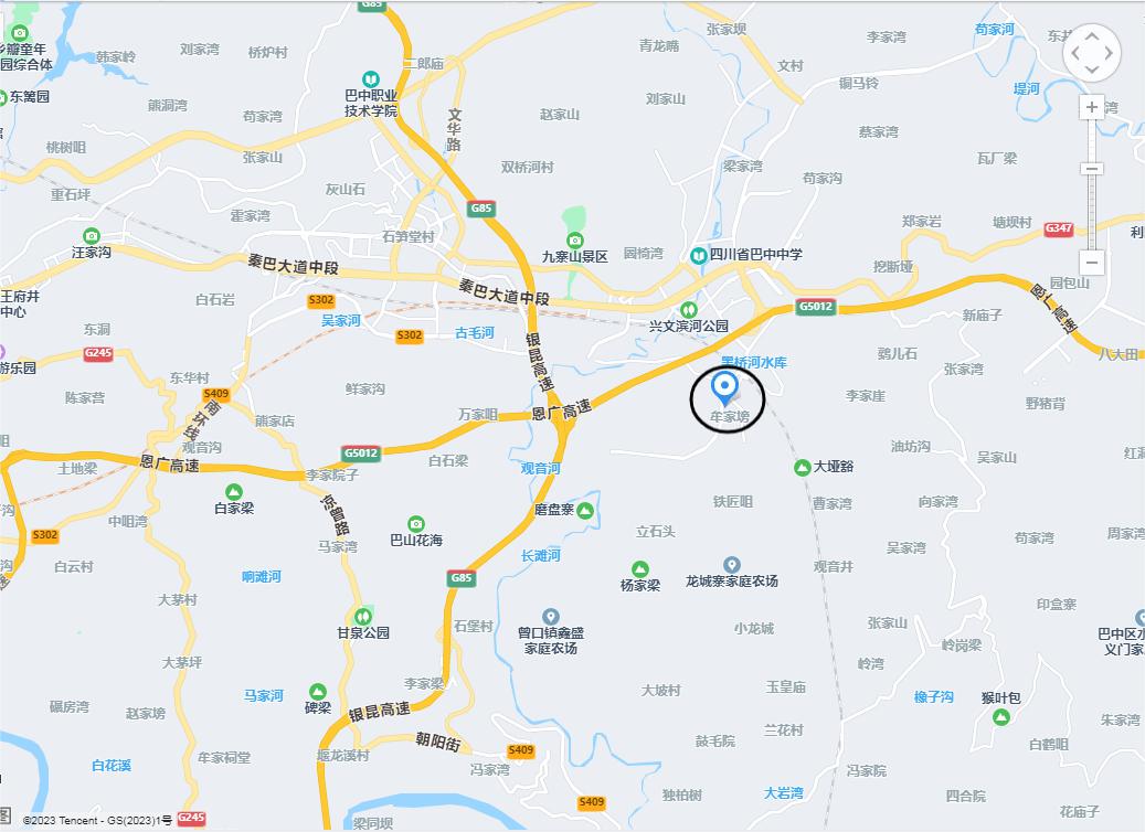 巴中糧食現(xiàn)代物流園區(qū)(巴中市巴中興文經(jīng)開區(qū)規(guī)劃14路中營村牟家塝),見地圖圓圈位置。